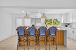 Completed in December 2024, the renovation transformed this 1,714-square-foot property into a high-end, move-in-ready home. Every surface was reimagined-from the custom cabinetry and quartz countertops to the luxury vinyl plank flooring, designer tilework, and impact-rated windows and doors. A standout feature is the enclosed lanai, which expanded the air-conditioned space and allowed for a larger primary suite with a sitting area, workstation, and full spa-style bath. The open-concept living area features a modern kitchen with an oversized island, high ceilings, and water views that flood the space with natural light. Located in The Dunes, residents enjoy pay-to-play and private membership options for club access offering 18-holes of golf, driving range, tennis, pickleball, pool, and dining, with Sanibel's beaches, shops, and trails just a short ride away.