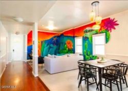 Recently remodeled home for lease featuring modern design and stylish furniture included. The living room showcases a custom mural of the city of El Paso, creating a unique and creative atmosphere. The property includes 2 bedrooms, 1 bathroom, refrigerated air, a full kitchen, washer and dryer, and no carpet. It offers a private patio with 3 parking spaces in the rear and 2 additional spaces at the front. Located in the desirable 79902 area, the home is minutes from Downtown El Paso, UTEP, major hospitals, restaurants, and I-10 access. Pets are negotiable and all utilities are paid by the tenant. Zoned C-4, the property can be used as a residence or for commercial purposes including office space, art gallery, wellness or health services, or a creative studio. The home can also be leased unfurnished.