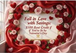 Valentine’s Special: Treat yourself to a little extra love this month. Receive a $500 rent credit when you lease with us.