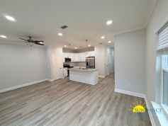 This beautifully crafted new construction two-story townhouse offering 3 spacious bedrooms, 2.5 bathrooms, and a 1-car garage. Designed with a split-bedroom floor plan for enhanced privacy, this home blends comfort, convenience, and contemporary style. Step inside to an inviting living/dining room combo that flows effortlessly into the full modern kitchen, complete with mounted microwave, dishwasher, stove/oven, refrigerator, and sleek kitchen cabinetry. The main level also features a convenient half bath in the hallway. Upstairs, the Primary Suite offers a peaceful retreat with a shower/tub combo, dual vanity, and a generous walk-in closet. Two additional bedrooms share a well-appointed full bathroom, and a dedicated laundry closet with washer & dryer hookups adds everyday convenience. Enjoy outdoor living on the open patio overlooking your fenced backyard, perfect for relaxing or entertaining. Hurricane shutters are included for added security and peace of mind. This stunning new townhome delivers comfort, privacy, and modern amenities ideal for anyone seeking fresh, low-maintenance living.