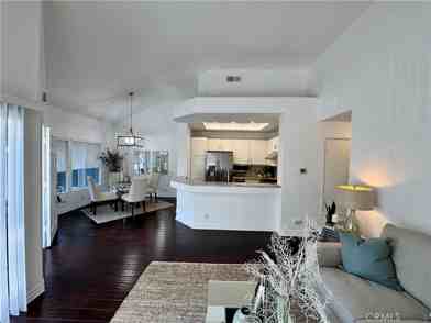 Welcome to this stylish second-story condo where comfort and functionality come together in one of the neighborhood’s most desirable settings. Surrounded by leafy tree views, this home offers a warm and welcoming atmosphere. Step inside to discover rich dark hardwood floors and vaulted ceilings that create airy volume from the gourmet kitchen through the dining and family areas. The kitchen features sleek stainless steel appliances, including a commercial-grade gas range and wine refrigerator, complemented by granite countertops and a convenient breakfast bar overlooking the living area. The primary suite includes a beautifully remodeled bath with granite countertops, designer fixtures, and upgraded hardware. Large windows fill the home with natural light and are fitted with custom shades for both beauty and comfort. Additional upgrades include recessed lighting, new baseboards, doors, and trim. Central air conditioning and heating ensure year-round comfort, and the in-unit laundry adds extra convenience. Outside, enjoy a spacious private patio perfect for relaxing or entertaining. The community offers resort-style amenities including a sparkling pool and spa. Ideally located near Fashion Island, Newport Center, the Back Bay Nature Preserve, major freeways, and the beach, this turnkey home is ready for move-in offering the best of coastal living.