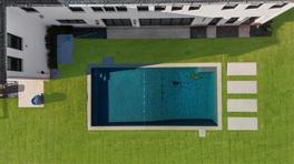 The OPEN CONCEPT interior is filled with natural light, gorgeous hardwood floors, and showcases beautiful wood accents, soaring ceilings, designer lighting, and a seamless connection to the outdoor living space. The family room features extensive windows and glass doors that overlook the gorgeous modern saltwater gunite POOL and the FULLY FENCED, FLAT backyard.