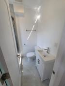 Large living room with high ceilings, multiple windows and pot lights. Brand new washroom with LED mirror.