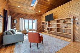 Chalet-Inspired Living Area The heart of the home features a warm, wood-accented design that brings cozy chalet energy to the Jersey Shore. • Large open living/dining space • Comfortable seating • 55” Smart TV • Relaxing, homey vibe ideal for unwinding after a beach day