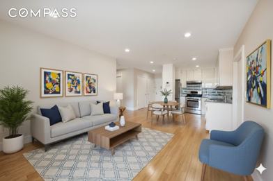 Welcome to this Bright and Spacious, beautifully maintained 2-bedroom, 2-bath residence located on the 5th floor of a contemporary 2014 building in Harlem s Bradhurst neighborhood. Offering approximately 970 sq ft, this home features an in-unit washer/dryer, excellent natural light, and abundant closet space, including a walk-in closet in the primary bedroom. The living area and both bedrooms are bathed in sunlight throughout the day, creating a warm and inviting atmosphere. The two full bathrooms are generously sized and thoughtfully designed for comfort and convenience. Building Amenities: Fitness center Recreation room with pool table, TV, seating & WiFi Luxor secure package delivery system Parking garage available for an additional fee PTAC heating & cooling Elevator building Located in a quiet, safe, and conveniently accessible area, this home is situated next to a police station and offers excellent proximity to transportation. The 3 train is just a 4-minute walk, and the A/B/C/D lines are only 8 minutes away. Everyday necessities and major retailers are at your fingertips: Super Foodtown is a 5-minute walk, and Bronx Terminal featuring Home Depot, BJ s, Best Buy, and Target is just a short drive. Disclaimer: The images are for illustrative purposes only and have been virtually staged.