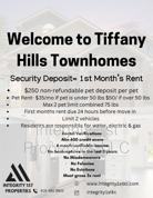 Security Deposit equal to one month's rent is due at signing of lease- 1st month's rent due 72 hours before move in. 2nd month of lease will be prorated if proration applies.