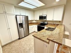 The spacious primary suite includes an individual vanity, a walk-in closet, and direct access to a private patio, creating a serene retreat perfect for morning coffee or evening relaxation. The living room is anchored by a cozy fireplace, providing a welcoming space for both everyday living and entertaining.