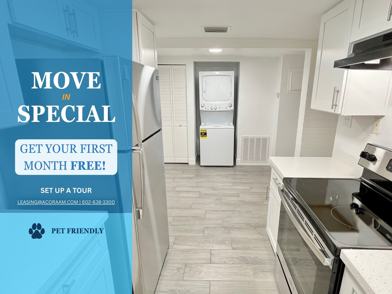 Coming Available February 20th, 2026! *MOVE IN SPECIAL! 1ST MONTH FREE WHEN SIGNING A 13 MONTH LEASE OR AN 18 MONTH LEASE!* THIS IS A FIRST FLOOR UNIT! THE CARLTON — GREAT VALUE • LARGE FLOOR PLAN • IN-UNIT WASHER & DRYER PLEASE ONLY INQUIRE IF YOU MEET THE FOLLOWING REQUIREMENTS: -No Smokers -No Crimes Against Children -No Evictions or Bankruptcies Within 60 Months of Application Date -Household Income of 3x the Monthly Rent is Needed. Proof of Income is Required -Acora Asset Management LLC Processes Full Credit & Criminal Background Checks on All Applicants & Complies With All Fair Housing Laws Take A Virtual Tour! : https my matterport com show ?m=TjZkKbizGCt ABOUT THE PROPERTY Prime Arcadia location close to dining, entertainment, shopping, and major freeways—everything Arcadia has to offer at a great value. UNIT FEATURES -Ceramic wood-look tile flooring -Stainless steel appliances -New kitchens with custom quartz countertops -Custom tiled bathroom shower -In-unit washer & dryer -Air conditioning -Spacious bedroom and living room COMMUNITY AMENITIES -One assigned parking space -Sparkling pool -On-site laundry facility PET POLICY -Pet-friendly community -$25/month -One-time $150 pet fee -Pet charges are flat, not per animal -Limit is up to 3 pets UTILITIES -Residents responsible for SRP Electric -Utility Reimbursement: $65/month (Water, Sewer, Trash) *MOVE IN SPECIAL! 1ST MONTH FREE WHEN SIGNING A 13 MONTH LEASE OR AN 18 MONTH LEASE!* LEASE TERMS & PRICING -Rent: $995 -Security Deposit: $500 (On Approved Credit/ Application) -Application Fee: $65 per applicant -Resident Services Charge: 2% of Monthly Rent -Renters Insurance is Required -Lease Terms: 12, 13, or 18 Month Leases For further information, please call our office at 602-638-3300 or view our listing on our website: AcoraAM. com Offered by Acora Asset Management, LLC Designated Broker: Colin Ralls Now Accepting Applications!
