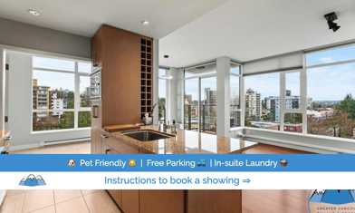 This home is available now! We are offering a bright 2 bedroom + den / 2 bathroom condo featuring 950 sqft of well-designed living space. This corner home offers excellent natural light, laminate floors, in-unit laundry, baseboard heating, a fireplace, and air conditioning for year-round comfort. The kitchen is equipped with essential appliances, and the layout provides generous living areas with a den ideal for an office or reading space. The home includes 1 parking stall with EV charger readiness. Residents enjoy access to large west and east outdoor gardens, complete with green space, tables, and benches—perfect for relaxation and outdoor enjoyment. Located in the sought-after Fairview neighbourhood, this home offers convenient access to South Granville, Granville Island, local cafés, shops, restaurants, and several transit routes. Downtown Vancouver, VGH, and the seawall are all within minutes, making it an excellent location for professionals and families alike. - Type of Unit: Condo - Approximate Square Footage: 950 - Number of Bedrooms: 2 + Den - Number of Bathrooms: 2 - Floor Level: 8th - Exposure: South-West (Corner Suite) - Heating / Cooling: Electric Baseboard Heat & HVAC System , Gas Fireplace / Air Conditioning - Parking: 1 secure stall (EV charger ready) - Storage: Not available - Pet Policy: 1 pet permitted - Smoking: No smoking, growing, or processing of any cigarettes, marijuana, or other combustibles on the property