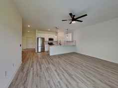 The home features a bright, open floor plan with plenty of natural light pouring through large windows. The living area is spacious, providing an excellent space for both relaxation and entertaining. The kitchen is equipped with modern appliances, ample cabinet storage, and a convenient breakfast bar, perfect for meal prep or enjoying casual meals.