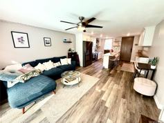 Ground floor, fully furnished, pet friendly unit (no weight limit), in-unit washer-dryer, private fenced courtyard, stone countertops, tons of cabinet storage, new kitchen cabinets and appliances. Vinyl plank flooring, no carpet anywhere in this super cute, renovated unit. The Ono Vista complex features a heated, salt water pool (easier on skin and bathing suits), HOT sauna, bathrooms, resident manager, one assigned parking spot with plenty of nearby FREE street parking. Enjoy bright mornings sipping tea, coffee, or mimosas in your private courtyard. Shady cool afternoons and evenings since the unit is on the cool, shady side of the building. Easy access to sidewalk from courtyard gate to take your furry friend for a walk or go to your spare car parked on the street. Easy access to Aweoweo Beach park featuring swings, picnic tables, playground, basketball court, showers, bathrooms, and beach access. Super close to the North Shore bike path which goes all the way to Haleiwa town.