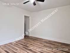 Welcome home to 505 W 36th St. Unit available in duplex. Recently updated 2 bedroom 1.5 bath. Central heat/window air. Kitchen appliances included (fridge & stove). Washer & dryer hookups. Renters insurance required.