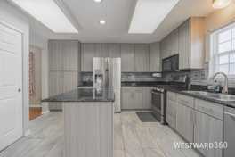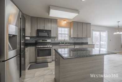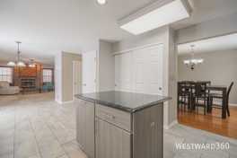 Step inside to a bright, welcoming 2-story foyer that leads into a beautifully remodeled kitchen. Designed for both style and functionality, it features soft-close refaced cabinetry, a glass tile backsplash, granite countertops, center island, pull-out drawers, recessed lighting, and two spacious pantries for exceptional storage. Newer stainless steel appliances and updated flooring complete this impressive space.