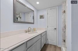 Turn-key coastal living in Cedar Dunes—just a short stroll to the Atlantic Ocean and 27th Avenue Beachfront Park! This beautifully updated 2BR/2.5BA townhome (~1,328 sq ft) blends beachside convenience with private outdoor living. Past the gated fenced courtyard, step inside to a light, open plan with luxury vinyl plank flooring, a modern, renovated kitchen (updated cabinetry, stainless appliances, and great prep/storage), defined dining space, and a comfortable living area that opens to the courtyard—perfect for morning coffee or evening grilling. A convenient half bath serves the main level. Upstairs you'll find two generous bedrooms, two renovated full baths, excellent closet space, and in-unit laundry. The home features balconies off the bedrooms and an spacious layout that lives larger than its square footage. The residence sits in a well-kept, low-maintenance community where the HOA maintains the grounds, so weekends are for the beach, biking, and exploring nearby.