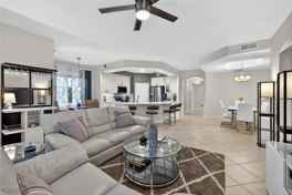 Modern, pristine & updated monthly rental available after Mar 21, 2026. Turnkey furnished 2/2/1 ground floor condo in Tarpon Bay, a tropical amenities rich gated community. Guests' cancellation means prime months open. Please see the links VIRTUAL TOURS & interactive floor plan. Crisply designed, comfortably decorated, 1620 sq ft under air in this 2 bedroom 2 full baths, 1 car garage space. Quiet & private oasis in updated condo, amenities include infinity edge pool overlooking 15 acre lake w 3 fountains & gazebo over the water for sunsets, fishing, sand volleyball court, canoe & kayak put in, spa, lounging area, grills w tables outside, fitness center, business center, library, catering kitchen. Near clubhouse are Har Tru tennis courts, pickleball courts, bocce, walking trails, bike friendly paths & sidewalks. Tarpon Bay is located 7 miles from the nearest beach, 9 miles from RSW airport, 10 miles from 5th Ave S. shopping, galleries, dining. From elegant foyer enter the spacious great room with Chef's kitchen w state of the art stainless steel appliances (natural gas stove, super quiet dishwasher, fabulous fridge, vented microwave.) The cabinets are topped by broad quartz counters including seating for 4 at extended breakfast bar. The deep overhang creates seating for 4, offers tons of prep space, all soft close drawers, full depth pull out drawers & upper display cabinets. Yes, there are pots/pans/spices & full size pantry. Living area has leather contemporary furnishings, cable tv, WiFi. Dining area of great room is under tray ceiling, the table seats 6. Also a cozy breakfast nook for 2. From great room & primary suite 3 sets of sliders pocket to the side so open to screened lanai expanding living space & adding lush view of preserve. Dining on the lanai for 6, loungers for 2. Primary owner's suite has King bed, OEKO-TEX linens, European body pillow, flat screen tv, large en suite bath w dual sinks, enclosed WC. Split floor plan has 2nd bedroom on opposite side of condo w Queen bed, extra storage, quality linens, tv. (This is a 1759 sq ft under air/2428 total sq ft 3bd/2ba/2car condo but owners lock off one bedroom & a walk in closet to 1620 sq ft for rent.) SORRY NO PETS allowed per HOA rules, NO SMOKING allowed period. Security deposit fully refundable if no issues, tenant pays 11% FL short term (under 6 mo) rental tax, fob fee for gated entry, application fee to association & end of stay cleaning. Also available off season at much lower rates.