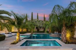 Privately gated Paradise Valley estate offering peak luxury living. This stunning home with a 478 sq ft guest house and 5,481 sq ft main house features 6 en-suite bedrooms, an office, a gym, and a gourmet chef's kitchen with professional appliances and an oversized island. Designed for entertaining, the open layout flows seamlessly to a resort-style backyard with pool, spa, lush landscaping, and multiple covered patios. A separate guest house provides ideal privacy for visitors, while the four-car garage offers ample space for collectors. Every detail exudes sophistication, comfort, and style-just minutes from world-class golf, dining, and shopping in the heart of Paradise Valley.
