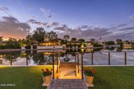 Lakeside Luxury: Your Dream Retreat in McCormick Ranch. Nestled on a serene cul-de-sac, this Spanish-style, single-level home backs to a tranquil lake w/ a private boat dock, perfect for sunsets. Featuring a split master floor plan, it offers 4 beds, 2.5 baths and almost 3,000 sqft. The interior boasts large picture windows, wood-beamed ceilings, and a stacked stone fireplace in the formal living and dining areas with stunning lake views. The upgraded kitchen shines with custom maple cabinetry, Wolf & Subzero appliances, granite counters, and a center island. The spacious master suite includes a relaxing sitting area, large walk-in shower, granite vanity, and an expansive walk-in closet. Outside, enjoy lakeside living with an oversized covered patio, gorgeous landscaping w/ putting green. There is an option to rent a boat for an additional daily fee.