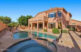 Sitting behind the gates of Country Club Estates on an oversized corner, cul-de-sac lot within an exclusive 104-home gated golf community, this home offers the lifestyle you have been looking for. This spacious home features a neutral color pallet updated, vaulted ceilings, updated kitchen with stainless steel appliances and a fire place in the large family room. Plenty of space for your family or to entertain for the holidays. You will find the large master located downstairs, as well as a dedicated office. Upstairs is the spacious loft with three additional bedrooms upstairs offering stunning mountain views. You will love the dramatic floor-to-ceiling windows that frame the resort-style backyard. Outside, you will enjoy the large covered patio, private pool with water features, oversized heated spa, a low-maintenance desert landscaping with mature foliage and vibrant fruit trees. This home also features an oversized 3-car garage with garage cabinets, an RV gate with a storage shed (ideal for parking your golf cart) and direct access to the prestigious Red Mountain Golf Course. All of this is located less than a mile from shopping, dining, and entertainment, additional award winning golf, world class hiking trials and easy access to the 202 freeway. This is home!