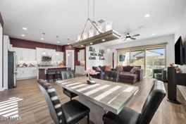 Public Remarks: Welcome! *This stunning 4-BD + den/office , 3 BA home by Woodside Homes offers 2387 sq .ft. of living space designed w/both elegance and functionality in mind. A 3 -car garage on a 6063 sq. ft. corner lot . Many upgrades! Notice the 9+ ft. coffered ceilings, and extra-wide hallways. A wall of windows in the great room fills the home with natural light and flows seamlessly to the outdoor covered patio with paved seating areas, EZ care lawn & relaxing Hot Tub - perfect for year-round AZ living. Heart of the home: is the chef's kitchen with custom cabinetry, granite counters, custom backsplash, island, walk-in pantry. The primary suite with a bay window bump-out and a gorgeous custom walk-in shower! Welcome!!