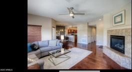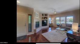 Updated and well-kept townhome in the highly sought after, gated community of Vintage at Grayhawk. Spacious open floorplan with updated light fixtures and ceiling fans, hardwood floors throughout the great room, kitchen and hallway. The family room has built-in entertainment wall shelving, a gas fireplace and is full of natural light from many windows. The kitchen boasts granite countertops, stainless steel appliance package, a lot of cabinet space and conveniently located laundry closet. The Owner's suite features plantation shutters, a large walk-in closet, and an ensuite bathroom with dual sinks and walk-in shower. There is a private balcony off the dining room to view blue skies for miles, a guest bedroom with plantation shutters and full hallway bathroom.