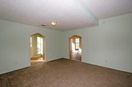 Fresh neutral interior paint and new grey carpet