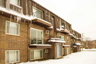 Just west of Milwaukee/Glenview/Dearlove intersection by The Grove, shopping and expressway: 2BR/1BA, main floor condo quality, newly renovated with all new appliances! Eat-in kitchen with stainless steel appliances (refrigerator, stove, dishwasher, microwave) and quartz counters, spacious living room with dining space and a sliding door balcony, two queen-sized bedrooms, AC, and closets galore! Hardwood style floors, coin-operated laundry in the building, storage, and parking, too!