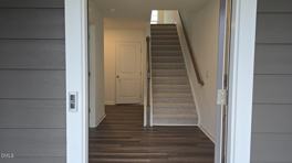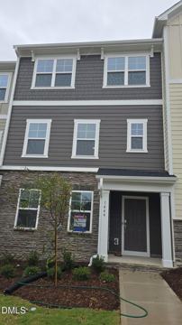 This 4 bedroom, 3 story Bradley interior unit townhome features a 1st floor bedroom with full bathroom also located on 1st floor, 2 car garage, Schlage smart door lock, Ring video doorbell. Spacious kitchen with center island, family and dining rooms include EVP floors, 9 ft ceiling on this 2nd floor. 3rd floor includes 3 more bedrooms with spacious Owner's Suite and Owner's Bath enjoying dual vanity and walk in shower with seat. Outside, enjoy your private deck or the community saltwater pool, clubhouse, fitness room, yoga/multipurpose room, walking trails, community playground. All this from a superb location extremely close to Raleigh and convenient to the greater Triangle area.