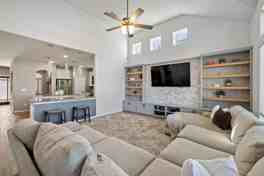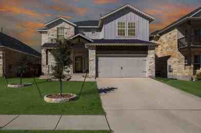 Welcome to 408 Ravello St, where style, comfort, and thoughtful design come together in one exceptional home. Step inside to discover beautiful luxury vinyl plank flooring that flows throughout the main living areas, setting the stage for a warm and cohesive living space. The grand curved staircase makes an immediate statement, giving the entry a touch of elegance. This spacious home features 4 bedrooms and 3.5 baths, including an upstairs bedroom with its own ensuite, perfect for guests, multi-generational living, or a private retreat. All secondary bedrooms are generously sized, offering comfort and versatility. The spacious kitchen is a chef's delight, featuring granite countertops, an oversized pantry, double islands, a butlers pantry and modern appliances. Throughout the home, you’ll find custom built-ins and designer accent walls, adding both functionality and personality to each space. The upstairs game room includes built-in storage and provides an ideal setting for movie nights, play space, or a second living area. The primary suite is a true haven featuring an ensuite bath with dual vanities, a luxurious soaking tub, and a walk-in shower. This sanctuary is the perfect place to unwind after a long day. Out back, enjoy a great-sized yard with an extended patio—perfect for outdoor living, entertaining, or relaxing evenings. Additional features include permanent Astoria lighting on the exterior, an oversized laundry room, spacious 2-car garage and more! Located in highly desirable Santa Rita Ranch, this award-winning resort-style community in Liberty Hill features an array of amenities, including several pools, water slides, a dog park, playgrounds, splash pads, parks, miles of trails, and many planned social events throughout the year.