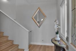 Upper Level: The main level boasts an open-concept living space seamlessly blending the kitchen and living areas. It includes a full guest bath and a spacious primary en-suite. The primary suite offers a custom, spa-inspired bathroom with an oversized walk-in shower and a massive walk-in closet. The room opens onto a large upper deck overlooking the pool and neighboring orchards with mountain views.