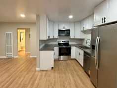 Must see to appreciate this fully remodeled 1-bedroom, 1-bath apartment in a convenient Sunnyvale location! This beautifully updated unit features quartz countertops and all-new shaker cabinets, modern stainless steel appliances, including an electric range, side-by-side refrigerator, an over-the-range microwave and dishwasher, a freshly painted interior, new laminate flooring throughout the unit, a stunning newly remodeled bathroom, and recessed lighting throughout the unit. Other features include a gas wall heater, a shared coin-operated laundry room on site, and one assigned carport space with a storage locker.
