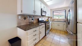 Modern Upgrades: Refrigerator, washer/dryer combo, granite countertops, and sleek laminated flooring throughout.