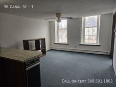 Step into this spacious and sun-filled 1 bed, 1 bath apartment located on the second floor of the historic Blackstone Block at 98 Canal St, Blackstone, MA. This charming unit offers oversized windows throughout, bringing in plenty of natural light and giving the living spaces an inviting warmth. The open living room features large windows, vintage trim details, and room for flexible furniture layouts.