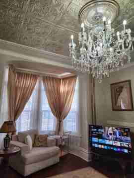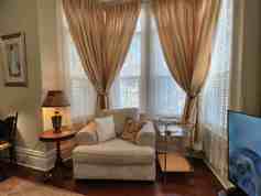 Immerse yourself in 1880's Cheyenne in this restored mansion built on "Cattleman's Row". Amazing 2 bedroom, 1 bath FURNISHED apartment with fully updated kitchen and large dining and living room. Just bring clothes and food. Perfect for families, and work groups. Care has been taken to keep the original charm of this vintage beauty. However, there is WiFi and a new smart TV. Upstairs bedroom has a queen bed. Bathroom is on the main floor, off the kitchen and includes a washer and dryer. Second bedroom is in the dining room with a sofa bed that turns into a single bed. There is also an air mattress. Fabulous kitchen if you like to cook. Private patio out back, Great location near Holliday Park and Downtown. Free parking off the alley. This is luxury living at its best. Background check required.