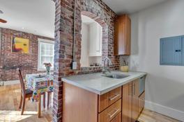 This sunny 1 bedroom with full bath sports gorgeous exposed brick walls, sizable kitchen with concrete countertops, custom tile shower, dedicated off street parking, ample storage inside unit & basement, super efficient heat and quiet outdoor space.