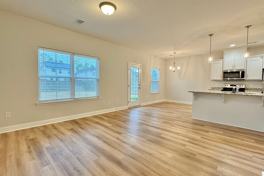 The living room features an open layout with plenty of space for your favorite furniture, plus a convenient half bath right off the main area. The living room flows easily into the dining room and kitchen, making the whole downstairs feel open and connected.