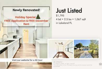 Beautiful 4 beds 2.5 baths Single-Family available for rent in Lakeland with 10 Stars Property Management