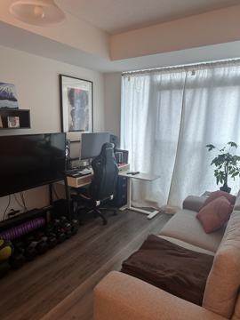 Open living/dining area with a Juliette balcony overlooking Liberty Village. Bedroom has a good-sized closet. Ensuite laundry, plus 1 parking spot included. Unit is ready for move-in!