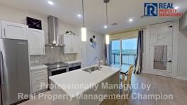 A unique opportunity to live in the desirable River Place. This 1 BD/1 BA luxury condo is located on the 6th floor and features breathtaking views of the Cape Fear River, the Battleship and Riverwalk. The kitchen includes beautiful quartz counters, tile backsplash, under cabinet lights, center island with space for bar stools and pendant lighting above and a custom built-in kitchen table. Stainless steel side-by-side refrigerator, dishwasher, induction range, stylish exhaust and built-in microwave are included. The kitchen is open to the living area which has a sliding glass door to the balcony. The bedroom offers equally stunning views, a bathroom with extra wide vanity, full tile step-in shower, and spacious custom walk-in closet. A utility room conveniently located in the unit includes a stacking washer and dryer for your convenience. Upgraded flooring and window treatments throughout. Enjoy living in downtown Wilmington with all its restaurants & shops and have full access to the River Place amenities including fitness center, roof-top pool, hot tub and grill area on the 7th floor and pet spa, concierge service and lounge with TVs and pool table on the 1st floor. One parking space is included in the adjacent covered parking garage. Trash/water/sewer are included with the rent. This property won't last long, schedule your showing today.