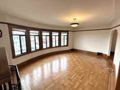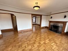 This inviting residence features a large formal living and dining room with a beautiful ornate fireplace and wall to wall windows.