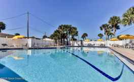 Beachside Rental in Ocean Village - Walk to the Shore! Live the coastal lifestyle in this charming 2-bedroom, 1-bath bungalow located in the desirable Ocean Village community. This home features tile flooring throughout, an updated kitchen with granite countertops and new cabinets, and a recently replaced AC unit (2021) for year-round comfort. You'll also enjoy a new bathroom vanity, a covered front porch, and a spacious back deck perfect for relaxing outdoors. Ocean Village offers wonderful community amenities including a private pool, tennis courts, shuffleboard, and a clubhouse--all beautifully maintained. With the beach just a short stroll away, this home combines comfort, convenience, and coastal charm.