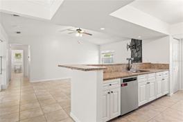 Welcome to this beautifully updated 3-bedroom, 2-bathroom, plus den/office home located in the desirable Pinecrest Villa community in the heart of Tampa. Offering 1,783 sqft of living space, this home features an open floor plan with 18"x18" tile throughout the spacious living areas, creating a bright and inviting atmosphere. The large kitchen opens to the family room and boasts granite countertops, stainless steel appliances, a breakfast bar, and custom soft-close cabinetry—perfect for entertaining or everyday living. The flex room is ideal for a home office, study, or cozy retreat. Enjoy the peace of mind that comes with new windows and AC (2021), a hurricane-impact front door (2022), and updated bedroom flooring (2025), along with fresh paint throughout. The spacious primary suite includes double sinks and a walk-in closet, while the additional bedrooms provide plenty of space for family or guests. Step outside to your large covered lanai overlooking a private, fully fenced backyard—ideal for relaxing or entertaining. This home is conveniently located just minutes from shopping, dining, and Raymond James Stadium.
