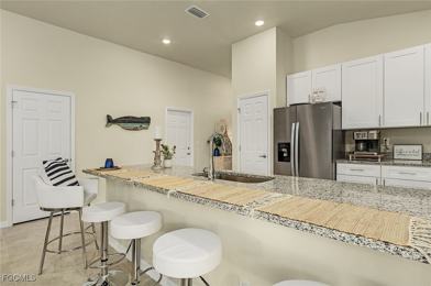 Step into elegant Florida living with this beautifully crafted 4-bedroom (or 3 + study), 2-bath home featuring a rare 3-car garage and an impressive array of high-end upgrades. Designed for both style and functionality, this home showcases 18-inch ceramic tile flooring throughout, 42-inch wood cabinets with soft-close hinges, and gorgeous granite countertops paired with a stylish tile backsplash for a kitchen that truly shines. The expansive 10-foot breakfast bar easily seats up to five, making it perfect for gatherings. Enjoy upgraded stainless steel appliances, ample workspace, and a layout that caters to both everyday living and effortless entertaining. Every bedroom is equipped with ceiling fans—including the covered lanai for relaxing outdoor comfort. Rent with confidence knowing you’re supported by a team committed to superior customer service and high-quality homes. Multiple properties are available with various move-in dates—choose the perfect one for you! (Photos shown are of the model home.) Experience elevated living in Cape Coral—your new home awaits!