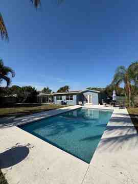 Welcome to your new home! Nestled in Stuart off of Palm Beach Road, this location is convenient to US1, Dixie Hwy, and just 15 minutes from the beach! On the inside- three bedrooms with two bathrooms and a beautiful kitchen accompanied by a large living area. On the outside- a resort-like pool and covered patio area to extend your living space, all overlooking a large fenced in backyard!