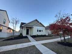 The primary suite, located at the front of the home, features a double vanity and a generous walk-in closet. Two additional bedrooms and a full bathroom are conveniently situated just off the main living area. Additional highlights include a large utility room with washer/dryer connections and a detached two-car garage.