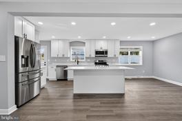 Stunning, Newly Renovated Home Near Alexandria, VA! Welcome to this beautifully renovated property, offering modern style and comfortable living just moments from Alexandria, VA. This home features high-end finishes throughout, an open-concept living space, and a fantastic outdoor deck for entertaining! The main level boasts a bright, airy open floor plan connecting the kitchen, living area, and main entryway. A cozy fireplace with a light-colored mantel adds warmth and character to the living space. The main floor and basement feature beautiful wood-look plank flooring. The kitchen is a chef's dream, featuring crisp white cabinetry, modern black hardware, and stainless steel appliances, including a full-size refrigerator, gas range, dishwasher, and microwave. A large center island with a white countertop provides extensive prep space and a perfect spot for quick meals. The home offers multiple bedrooms, some with wood-look plank flooring and others with plush gray carpeting, providing comfort and flexibility. Bathrooms are fully updated with modern vanities, black fixtures, and striking marble-look tile in the shower and/or tub surrounds. The primary bathroom features a sleek glass-enclosed shower with a rain showerhead. The spacious finished basement features recessed lighting, durable wood-look plank flooring in the main area, and a separate room with soft gray carpeting, ideal for a second living room, home office, or recreation area. This lower level also includes a full bathroom and a dedicated laundry room with hookups and a utility sink. The attractive curb appeal is highlighted by the charcoal gray exterior and white trim. Enjoy the outdoors on the newly constructed deck/patio area overlooking a grassy yard, perfect for relaxing or entertaining. The property also includes a garage and a driveway for convenient parking. This property has been meticulously renovated with a cohesive, modern aesthetic-including light gray walls and recessed lighting throughout-making it move-in ready. Don't miss the opportunity and schedule your showing today!
