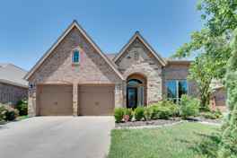 PERRY HOMES -Extended entry with 12-foot coffered ceiling. Library with French doors. Family room with a wall of windows. Kitchen features an island with built-in seating space and a walk-in pantry. Private master suite with a wall of windows. Master bath includes a corner garden tub, separate glass-enclosed shower, dual vanities, and two walk-in closets. Guest suite with full bath. Secondary bedrooms complete this one-story design. Covered backyard patio. two-car garage.