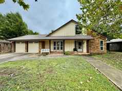 Stunning 70's contemporary home in coveted SE Edmond sitting on a lush 1/4 Acre lot! Entry den with formal dining space and built in shelving. Open kitchen with new stainless gas range, microwave and abundant cabinet/counter space. Breakfast area w/ closet that flows to the upstairs overlook living space with half bath and charming office/work space w/ built-in desk and crafting table. Tons of built-in storage throughout. All 3 bedrooms lie downstairs along with tastefully updated full bathrooms. Large sunroom off garage/kitchen area that leads out back. Large 2 car garage featuring in-ground storm shelter. Perfect backyard retreat and entertainment space with pergola, several sitting area's w/ furniture providing the ideal balance of nature whilst residing in the city within close proximity to all amenities and the turnpike. Available Now for ASAP Lease start/Move-in day.