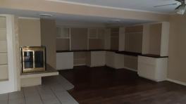 Lower level unit with 2 large bedrooms / 2 bath (master bath has large walk in closet w/ built-ins), living room with built in desks and shelves, laundry room, wood laminate and tile floors, fireplace, great view of private lake, side entrance with enclosed patio.