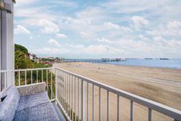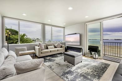 Coastal luxury in a boutique 12-unit beachfront condo complex. This top-floor, fully renovated 2br/2ba with en suite primary residence offers ocean views from every room, a private balcony and direct access to the beach and beach-level garden. Enjoy hardwood floors, four skylights, a fireplace, in-unit washer/dryer, designer kitchen appliances, A/C, covered assigned parking, and storage. Perfectly southeast facing - enjoy panoramic sunrises & sunsets. Located in a serene stretch of the beach, set away from public parking, crowds, and noise - fall asleep to the sound of waves. Pets under 25 lbs are welcomed.