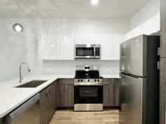As soon as you enter the building, you are greeted with a sense of security, as well as the stylish touches throughout the building. Each apartment has been carefully designed with attention to detail, from stainless steel appliances with beautiful backsplash tile in the kitchen to the cozy bedrooms, making each one a unique and comfortable living space. Backsplash and shower tiles vary as well as cabinets and light pendants in the kitchen so you can choose a design that fits your style.